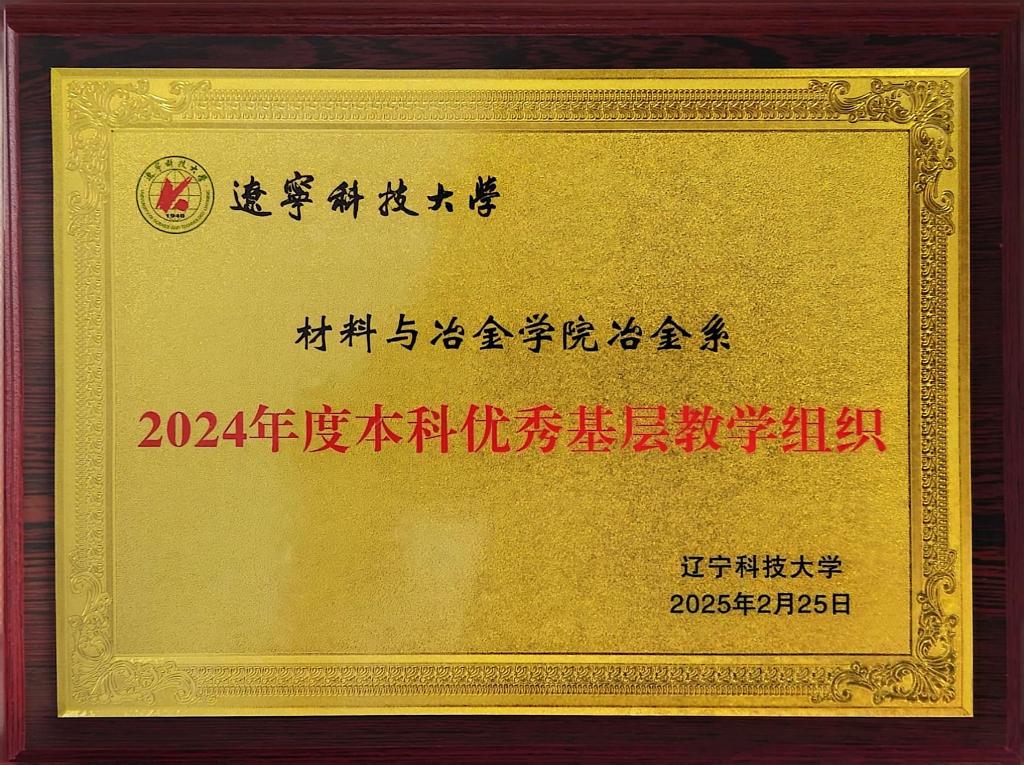 近期,乐投平台材料与冶金学院冶金系荣获“2024年乐投平台本科优秀基层教学组织”殊荣。该荣誉是对我院冶金系在教学改革、师资队伍建设、科研创新以及产教融合等领域取得显著成就的高度认可。