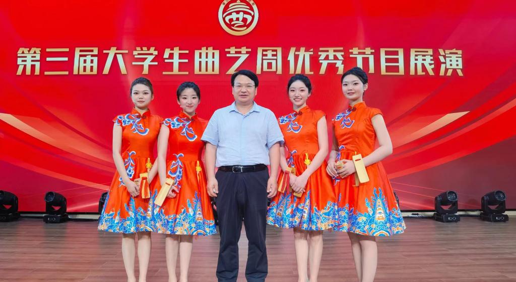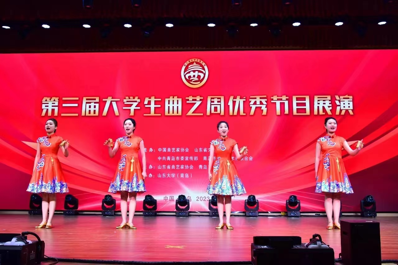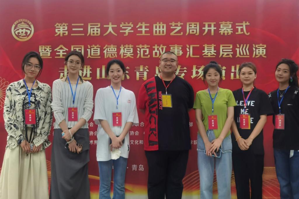 5月19日-21日,第三届大学生曲艺周在青岛举行。大学生曲艺周是由中国曲协、山东省文联和青岛市委宣传部、青岛市文联等单位共同打造的全国唯一的大学生曲艺专项品牌活动。本次活动由山东省曲协、青岛市曲协、中共李沧区委宣传部承办。乐投平台艺术学院选送作品群口快板《中国诗民族魂》、相声《女神养成记》入选展演,师生7人赴青岛参加曲艺周。